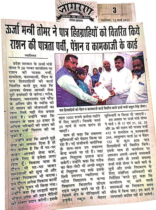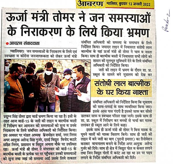 माननीय जी के द्वारा ग्वालियर जिले में जनसमस्याओं के निराकरण के लिए वार्ड 15 में भ्रमण किये ।