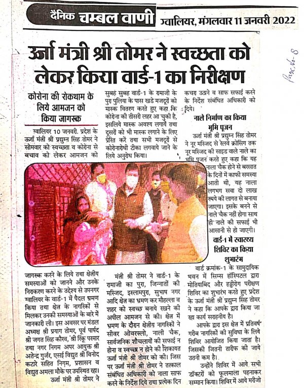 माननीय जी के द्वारा जिले ग्वालियर में स्वच्छता को लेकर वार्ड 01 में किये निरीक्षण।