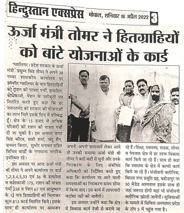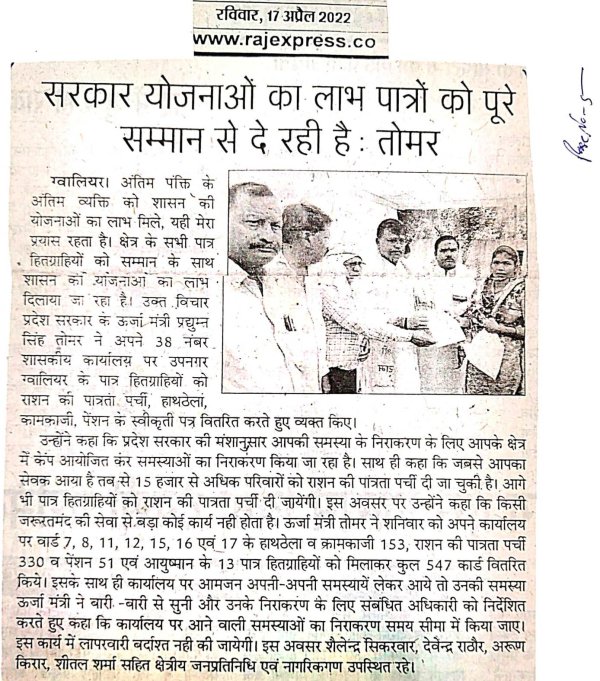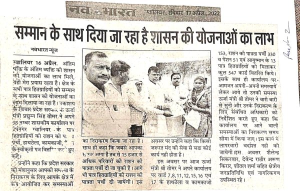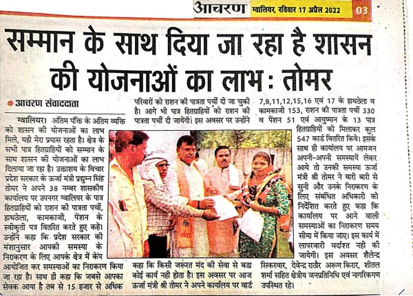 राशन पात्रता पर्ची एवं पेंशन प्रमाण पत्र वितरण के दौरान...
