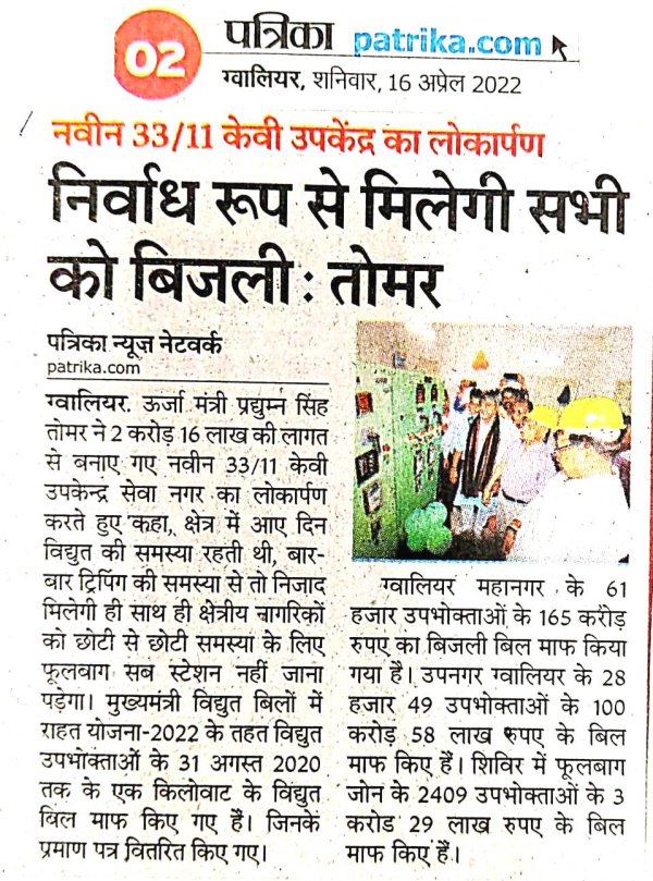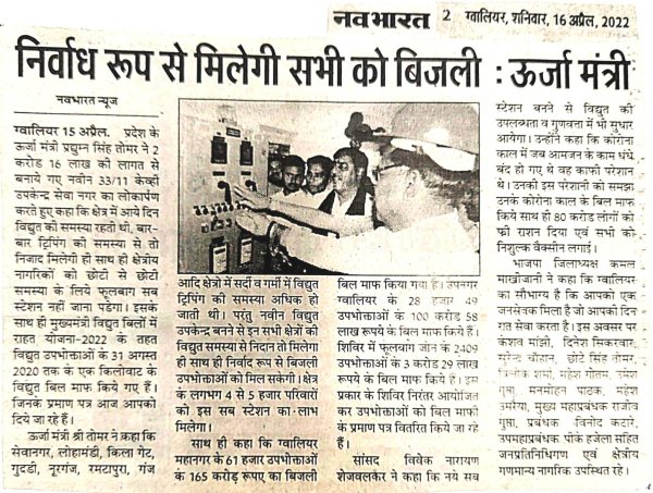 33/11 के वी सब स्टेशन, सेवा नगर के लोकार्पण के दौरान...