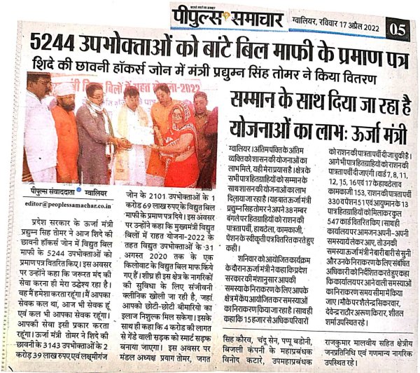 बिजली बिल माफी प्रमाण पत्र वितरण के दौरान...