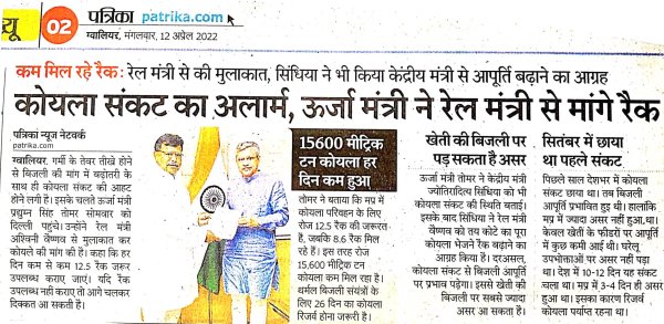 मा0 रेल मंत्री जी से श्रीमंत सिंधिया जी के साथ कोयले की आपूर्ति के दौरान...