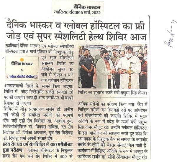 दैनिक भास्कर व ग्लोबल हॉस्पिटल का फ्री जोड एवं सुपर स्पेशलिटी हेल्थ शिविर का शुरभारंज माननीय जी ने किये।...