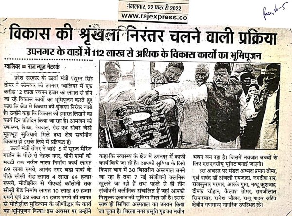 माननीय जी उपनगर ग्वालियर के वार्ड क्रमांक 05 में 112 लाख रूपयेे से अधिक के विकास कार्यों का किया भूमि ...