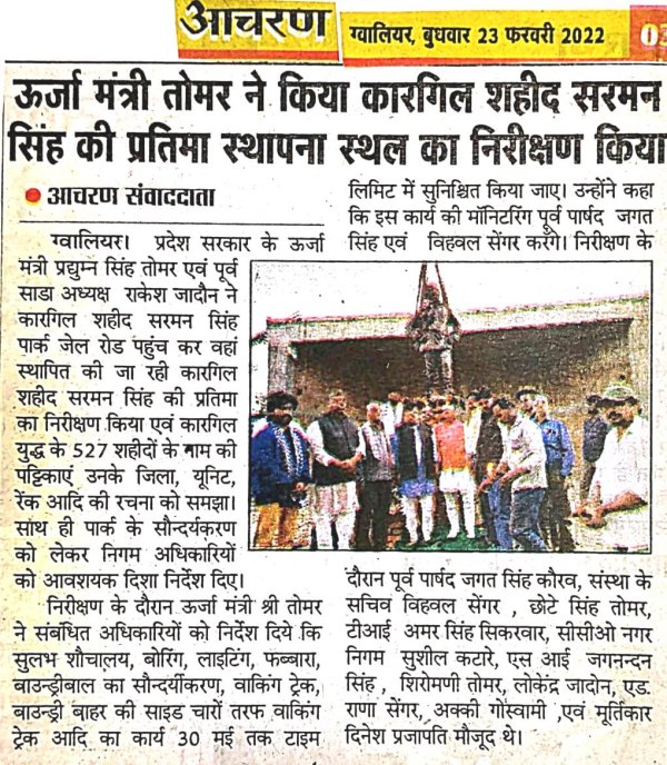 माननीय जी कारगिल शहीद सरमन सिंह की प्रतिमा स्थापना स्थल का निरीक्षण किया।...