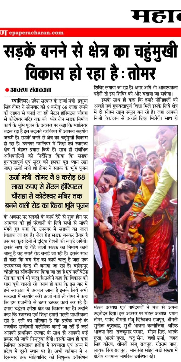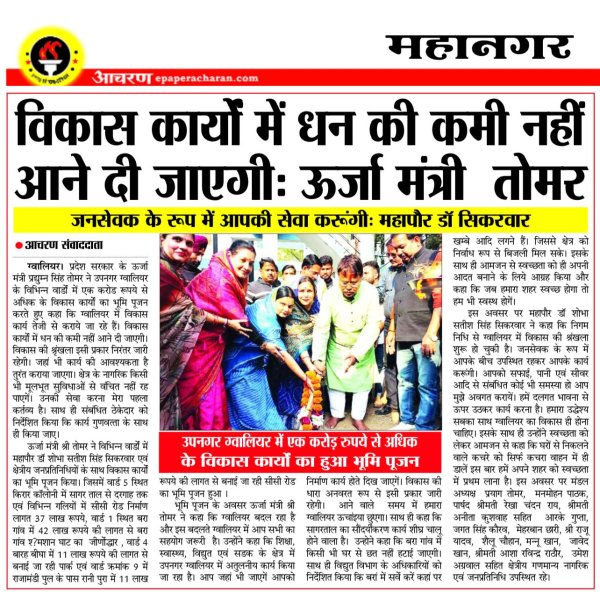 उपनगर ग्वालियर अंतर्गत विभिन्न विकास कार्यों के भूमिपूजन के दौरान।...