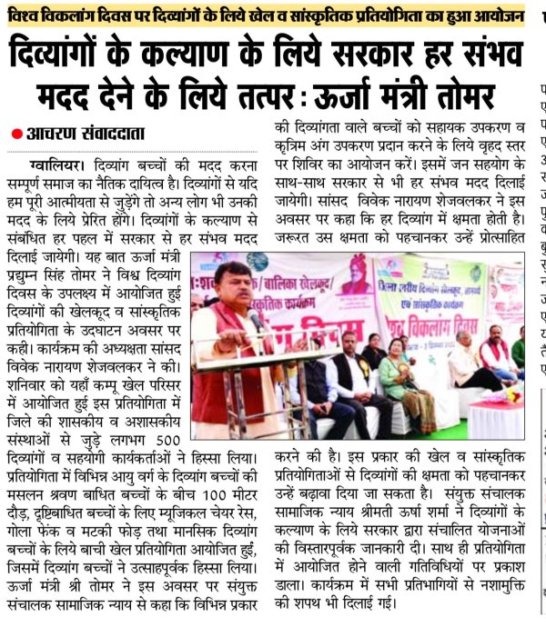 विश्व दिव्यांग दिवस के अवसर पर आज खेल परिसर कम्पू स्थित जिला स्तरीय नि:शक्त बालक / बालिका खेलकूद सामर्थ प्रदर्शन ...