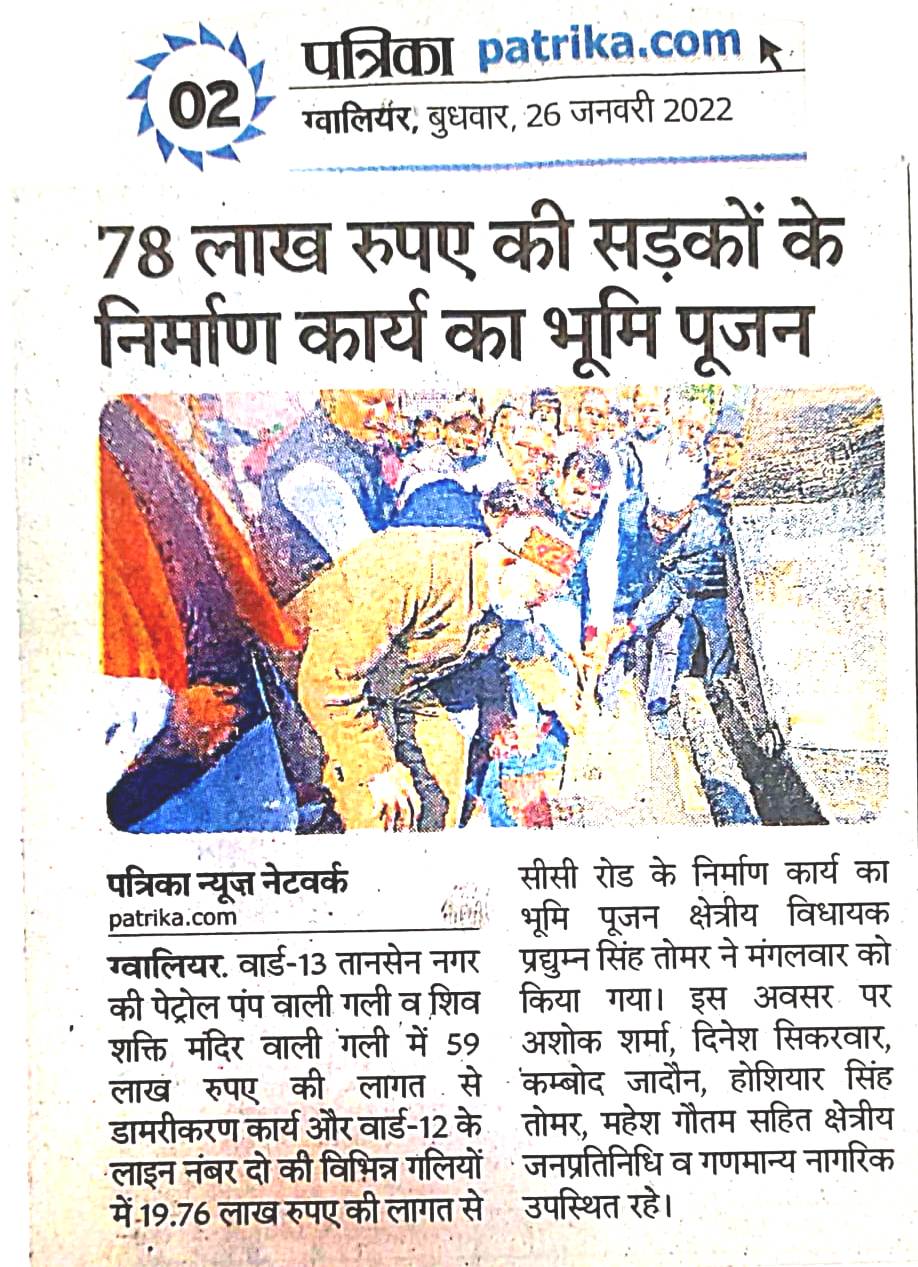 माननीय जी ने ग्वालियर जिले के तानसेन नगर में सडकों के निर्माण का भूमि पूजन किये।...