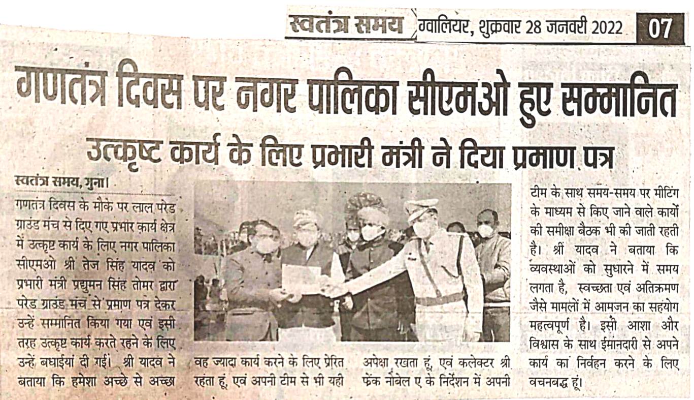 माननीय जी के द्वारा गुना जिले के लाल परेड मैदान पर गणतंत्र दिवस पर नगर पालिका सीएमओं हुए सम्मानित।...