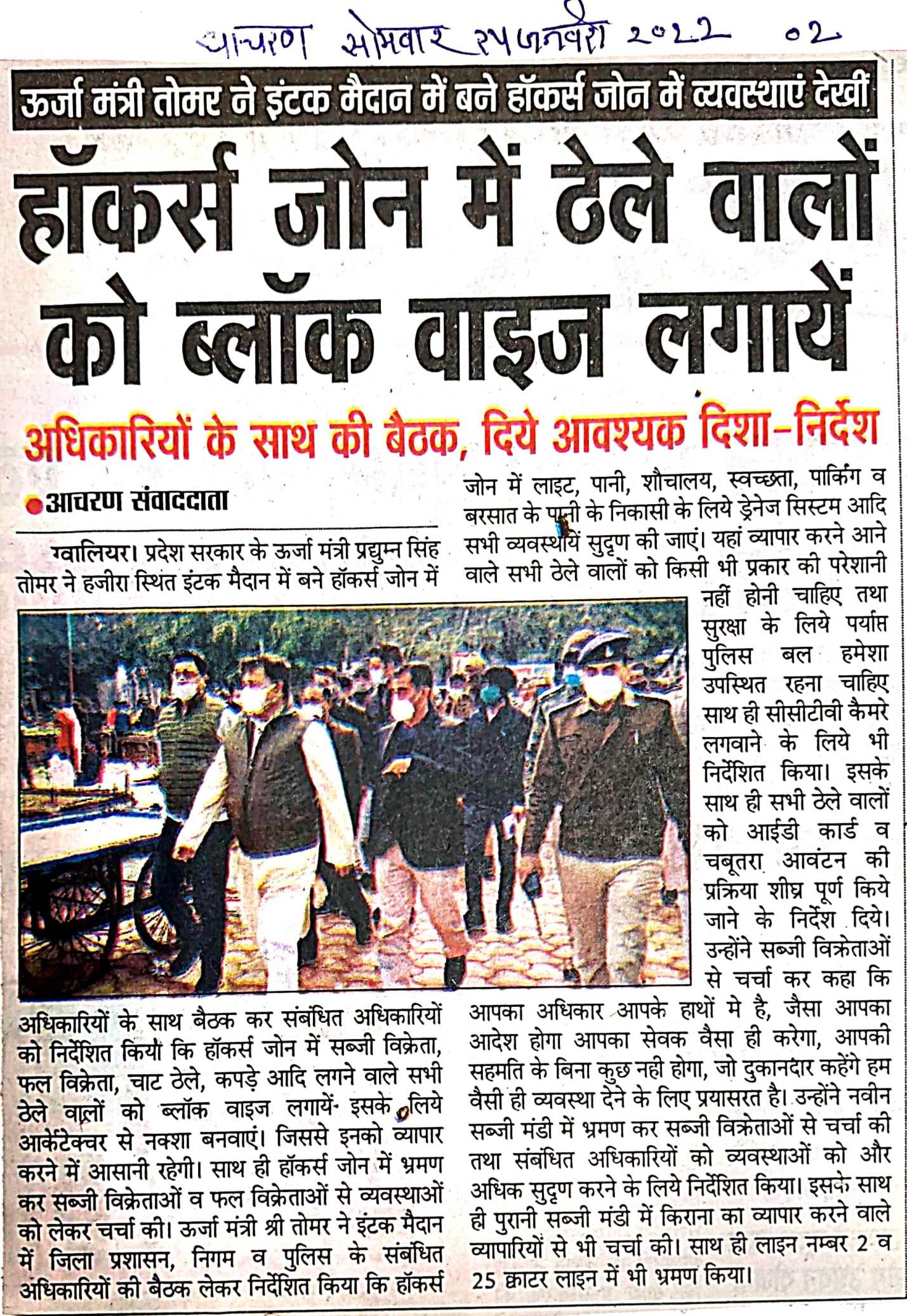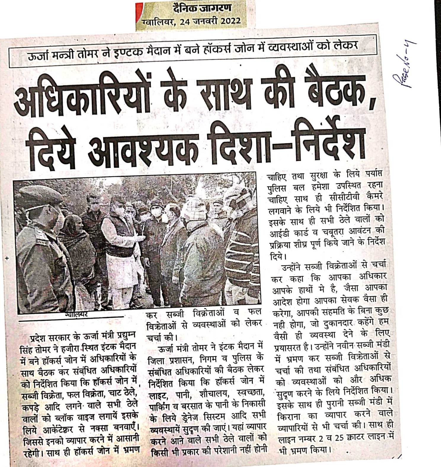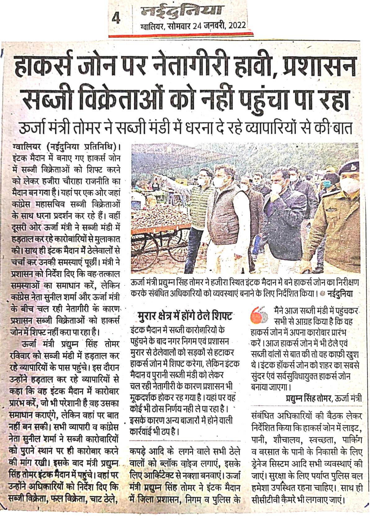 नीय जी ने ग्वालियर जिले के इंटक मैदान में बने हाकर्स जोन में व्यवस्थाओं को लेकर संबंधित अधिकारियों के साथ ...
