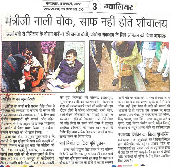माननीय जी के द्वारा जिले ग्वालियर में स्वच्छता को लेकर वार्ड 01 में किये निरीक्षण।...