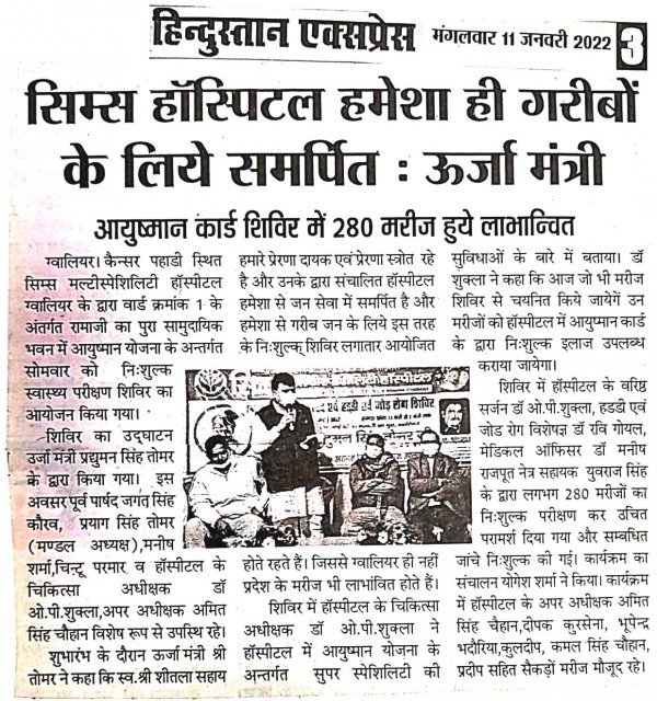 माननीय जी के द्वारा जिले ग्वालियर में सिम्स हॉस्पिटल का उदघाटन किये और सिम्स हॉस्पिटल को गरीबो की सेवा में ...