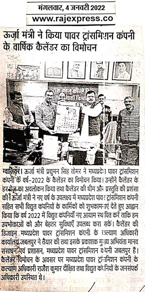 माननीय जी के द्वारा पॉवर ट्रांसमिशन कंपनी के कैलेण्डर का विमोचन किया गया।...