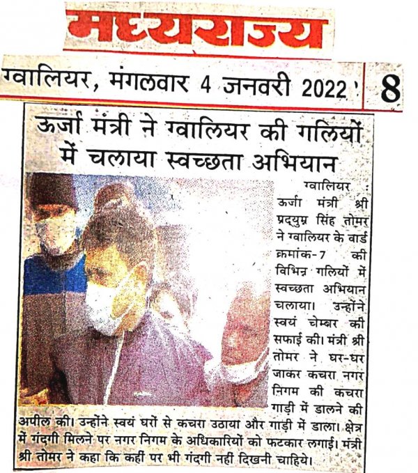माननीय जी के द्वारा ग्वालियर के गलियों में चलाया स्वच्छता अभियान।...