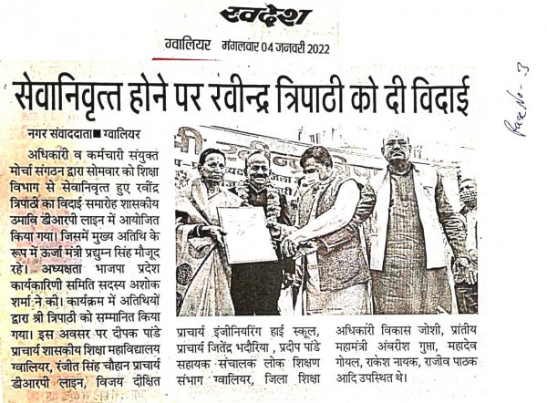 माननीय जी के द्वारा सेवानिवृत्त होने पर रवीन्द्र त्रिपाठी को दी बधाई।...