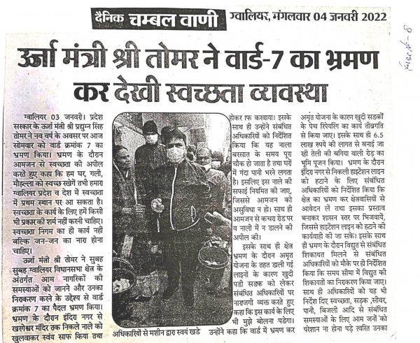 माननीय जी द्वारा वार्ड-07 का भ्रमण कर स्वच्छता व्यवस्था देखी।...