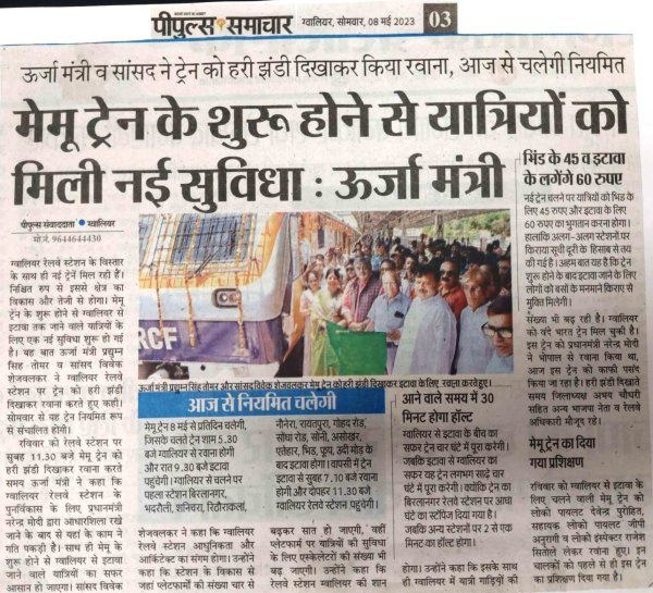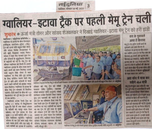 ग्वालियर - इटावा के बीच चलने वाली पहली मेमू ट्रेन को आज ग्वालियर स्टेशन पर हरी झंडी दिखाकर रवाना किया...